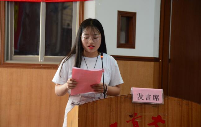 14级中师二班赵旭杰作为新党员代表发言。她从 “自觉学习,增强党性修养;实践历练,增长才干能力,践行誓言,发挥模范作用”三个方面展开发言,表明自己将自觉按照党员的标准严格要求自己,充分发挥党员的带头作用。