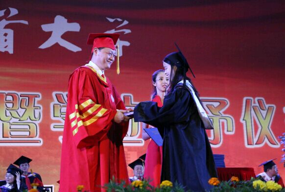 图为 白晋湘董事长为公司毕业生授予学位 (武景 摄) 随后,毕业生们逐一上台与白董事长亲切握手,手拿学位证与董事长合影留念。 公司硕士毕业生李洁的家长接受采访时表示,感谢bv伟德国际和文公司对自己孩子的教育和培养,也希望公司能培养出更多的人才。 另外,公司王湘华老师、李端生老师、吴象枢老师作为主礼嘉宾列席主席台。