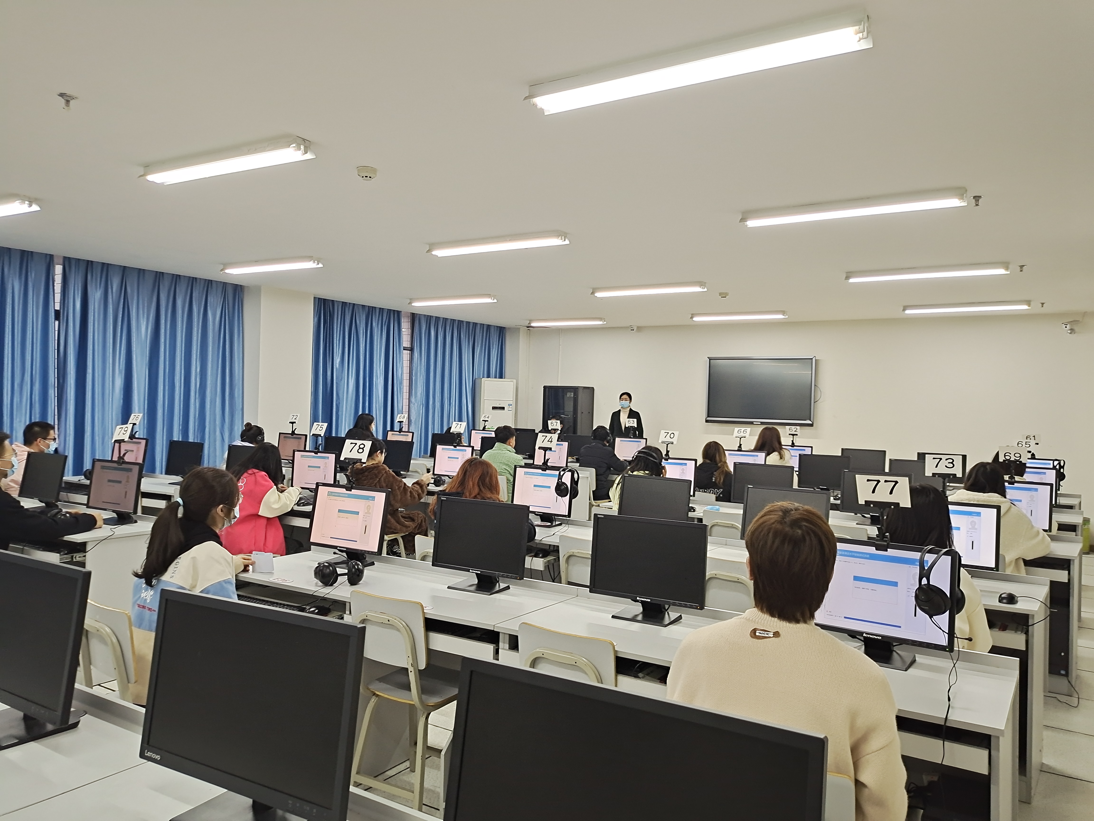 考试包括候测、备测、正式测试三个环节,各环节工作人员严格执行考场纪律,做到考前教育到位、证件核验到位、技术保障到位、防疫消杀到位。在大家的共同努力下,测试工作和疫情防控步步落实、环环相扣。湖南省普通话水平培训测试中心工作人员也来到现场指导,讯飞公司技术人员全程远程指导,共同保证了本次测试的圆满完成。