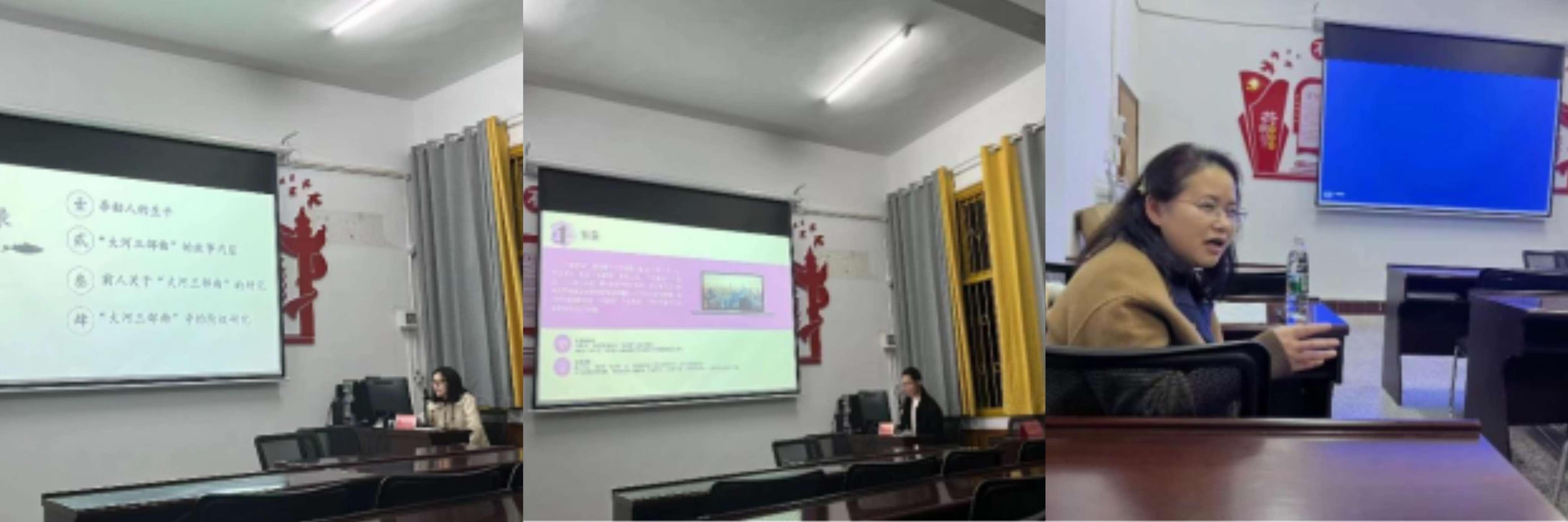 中国语言文学专业刘春林分享的是李劼人“大河三部曲”中的阶级研究这一专题,她从李劼人的生平、“大河三部曲”的故事内容、前人关于“大河三部曲”的研究、“大河三部曲”中的阶级研究四个方面展开汇报。叶青松分享的是国内“非虚构写作”,他从“非虚构写作”产生的背景、“非虚构写作”引发了文学领域相当规模的写作与讨论热潮、“非虚构写作”面临着双重困境三个方面展开汇报。