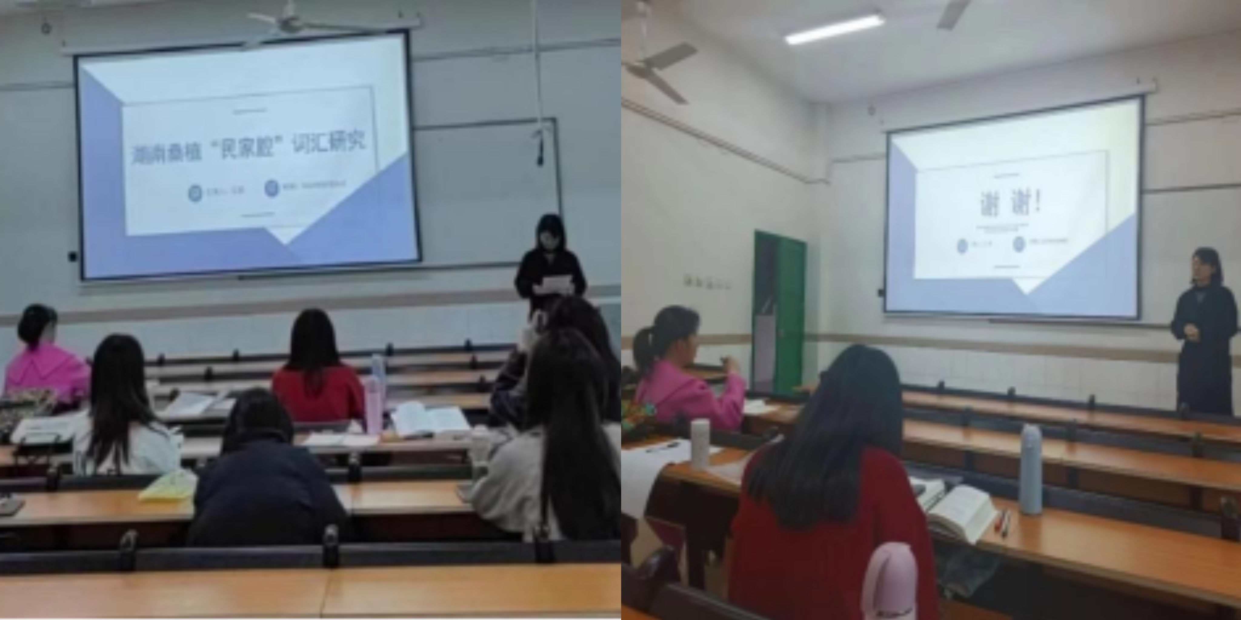 文字学专业江妙分享的是四个板块:桑植地理人文概况介绍、“民家腔”、“民家腔”研究综述、词汇研究。其中民家腔板块是重点分享内容。根据现有文献资料,她认为桑植方言的研究起步晚,目前学术界对桑植县白族“民家腔”方言研究的内容主要集中在语音上,词汇的系统研究少,深度不够。“民家腔”词汇研究对充实桑植方言学研究、丰富桑植白族学的研究都具有重要意义。