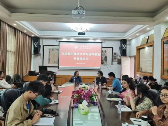 (通讯员:朱李月、黄朝辉)2025年4月22日下午,四川师范大学马正平教授受邀来公司开展了一场题为《实践形而上美学:一种时空本体论的知行递变论进路》的精彩讲座。本次讲座由公司文艺学教研室主任刘泰然教授主持,张剑锋、崔淑兰老师出席,2024级中国语言文学和学科教学(语文)专业全体研究生,以及部分从文班员工共同参加了此次讲座。