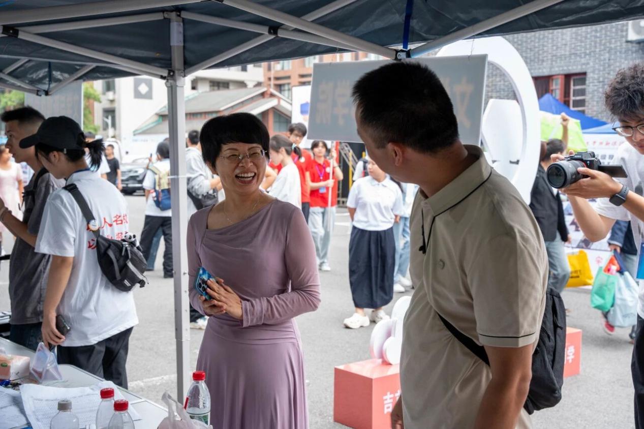 在公司迎新点前,公司设置了温馨的报到流程指引宣传展板。新生家长们纷纷来到新生班主任队伍、团学活动、以赛促学工程等宣传展板前驻足,并在公司报到打卡点前进行拍照打卡。