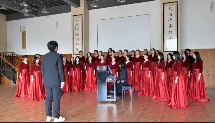 本队伍征集了院声乐队、舞蹈队、主持人队,拥有众多才华横溢的队员,涵盖各个声部。大家怀着对合唱艺术的执着与热爱走到一起,通过不断地排练与磨合,力求呈现最和谐美妙的和声,用歌声传递情感与力量,展现青春风采,用音乐感染每一个人,为校园文化增添了一抹亮丽的色彩。