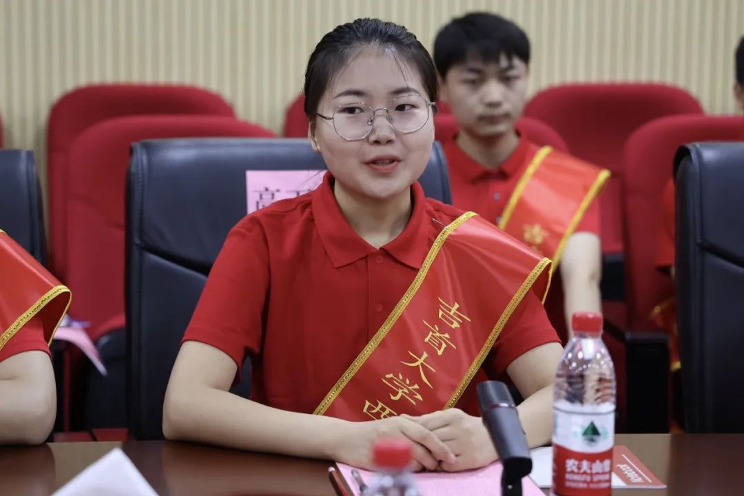 法学与公共管理公司刘洋代表2024届全体志愿者向母校作出庄严承诺:“我们定将不负众托,努力践行‘以人名校、以业报国’的校训,出色地、圆满地完成西部计划志愿服务工作,努力成为有理想、敢担当、能吃苦、肯奋斗的新时代好青年”。