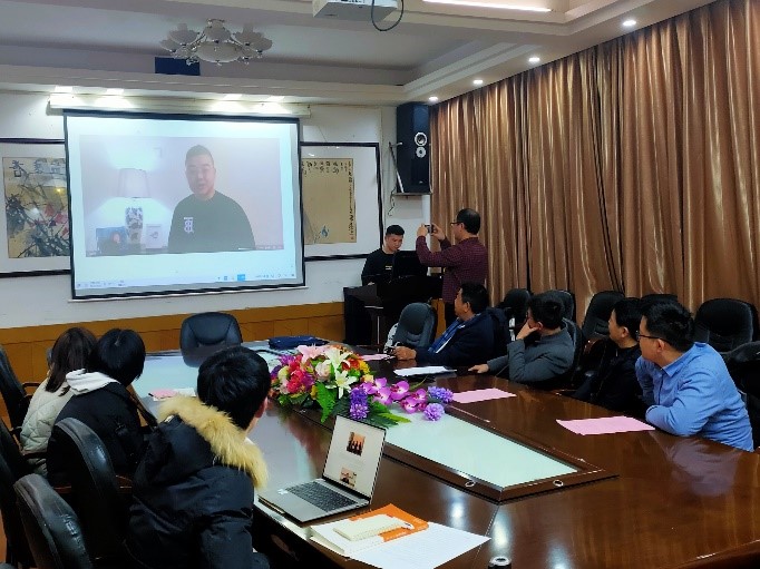 图为 颁奖现场播放员工视频(通讯员 邱馨瑶摄)