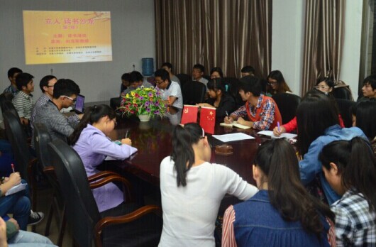 作为一个文公司学子,却很少安静地坐下来去读一本书,这点我是惭愧的。这是个最好的年代,也是个最坏的年代。越来越多人在钢筋水泥、网络信息的丛林里风声鹤唳,草木皆兵。再难闻到那一捧书香,触碰那一纸喷墨,搜寻那一抹背影。今天能够幸运地参与这个读书会,感受到大家思想的碰撞。在这里,我们不再沦落为“低头一族”而是学会了抬起头来表达,天马行空的想法,个人的经历和感受,都可以作为你侃侃而谈的谈资。在这里,我学会了聆听,学会了思考,更学会了表达。