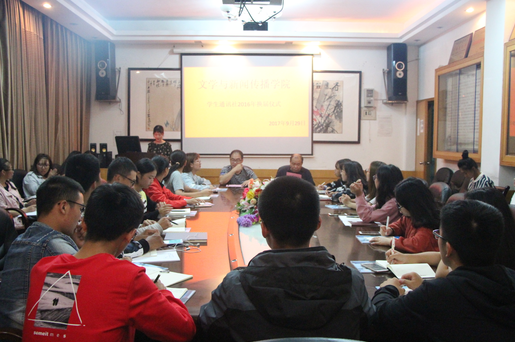 本网讯(员工记者尹羚又)9月29日晚,在砂子坳校区影视鉴赏室公司举行了学通社2017年换届交接暨表彰大会。参加本次会议的有公司副经理彭广林、新闻系主任李端生两位学通社指导老师以及学通社新老成员。大会由2016级学通社成员陈德玉主持。