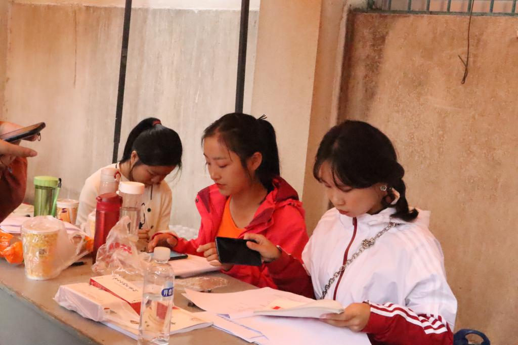 当运动员们在场上奋力拼搏的时候,有这么一群人为同学们忙碌奔走,有的在分发号码牌,有的在忙着检录,他们就是在幕后默默付出的工作人员。