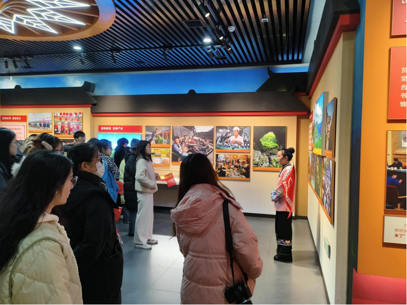 调研伊始,同学们通过参观“十八洞村精准脱贫之路”主题展览厅,了解了十八洞村脱贫攻坚的发展历程,从习近平总书记亲切称呼的“石大姐”到洋溢着十八洞村村民灿烂笑容的微笑墙,大家看到了精准扶贫战略实施后十八洞村的巨大变化,深入学习习近平总书记精准扶贫战略思想,深刻领悟党为人民谋幸福的初心和使命。