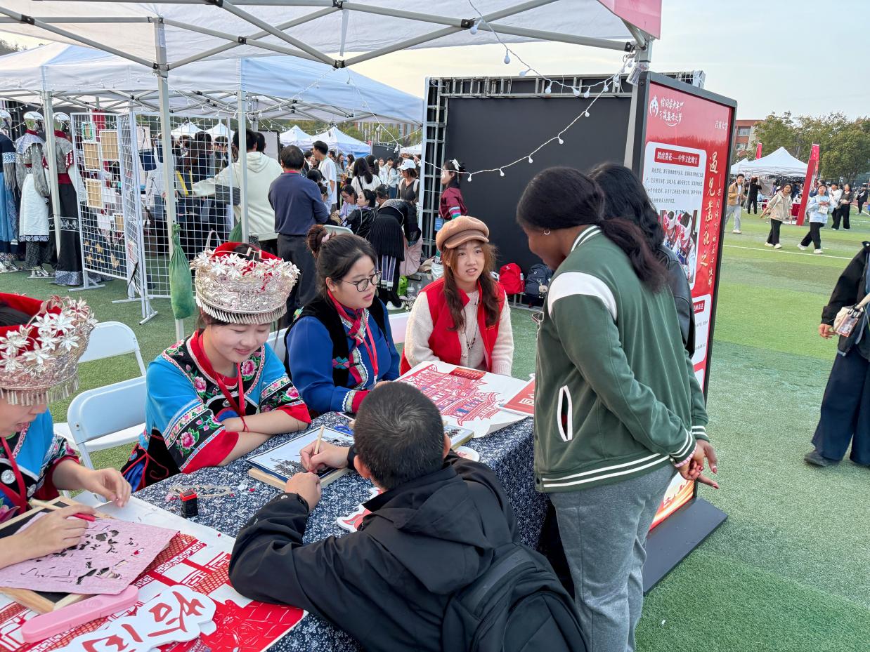 本网讯(通讯员 张雨童)11月5日,由湖南省民宗委、省教育厅、团省委联合主办的“恰同学少年 筑复兴之梦”——2025年湖南省高校铸牢中华民族共同体意识现场展示体验暨文艺展演活动在中南大学落幕,bv伟德国际1946师生创作的短视频《跨越山海的课堂》荣获湖南省高校铸牢中华民族共同体意识短视频大赛二等奖,师生非遗剪纸作品“踏虎凿花”在非遗现场展示获得好评。两项成果集中彰显了公司在跨文化传播、非遗创新与实践教学领域的雄厚实力。