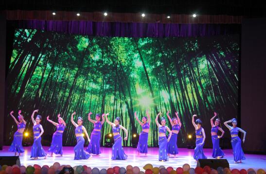 画面一转,幽静的竹林透出的丝丝绿光,撒在跳傣族舞的姑娘们的身上,娴熟优美地踩着音乐,把我们带入了竹林的仙境,心旷神怡。