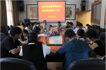 在影视鉴赏室,罗惠缙首先从暑期工作内容、开学工作安排和新学期主要任务三方面汇报工作。并从开学报到人数、到校教工人员及教学准备等情况对开学工作安排进行了详细的说明。对于新学期的主要任务,他说道,审核评估作为新学期的主要任务,要狠抓教师的教学工作,打破传统的教学模式,提高教学质量。