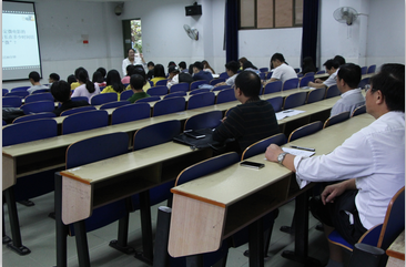黄昕一行先来到砂子坳校区60216教室听取了网络与新媒体专业老师龚若敏2014级网媒班上的《微电影制作与鉴赏》课程。在听课过程中,领导们认真记录,同学们认真听讲,积极发言,课堂气氛和谐融洽。