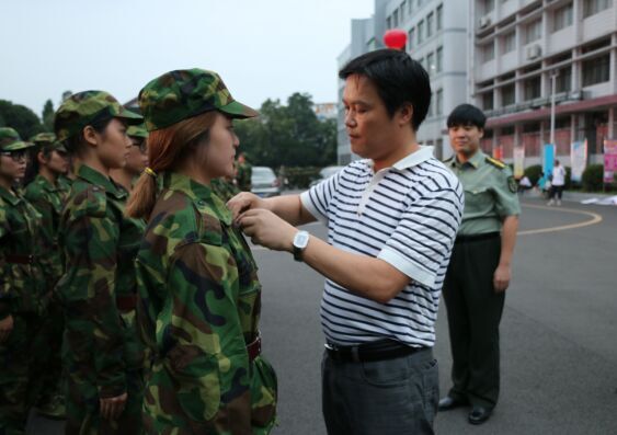 图为 王江生老师为员工授牌(李艾玲 摄) 随后,王江生还给公司部分新生授于胸牌。胸牌为公司2015级新生军训一大创新,胸牌上写有文公司的标示、新生姓名和班级。据辅导员刘畅介绍,为新生授牌旨在让刚刚入学新生们可以快速地相互认识,增强“我是文院人”的集体荣誉感,也便于教官和新生之间的联系,同时,他更希望新生们能主动大胆地介绍自己,增强自信。 据悉,本次军训分为五个排,将沿袭公司传统与特色,经过一系列训练后,选出精英排,参加校队列会操比赛。