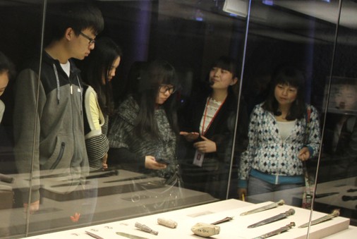 图为 讲解员为同学们介绍藏品 (丁园园 摄)