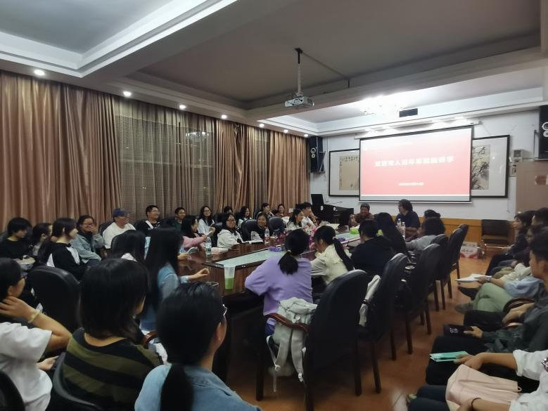 本网讯(通讯员 黄朝辉)10月14日晚,著名诗人刘年应邀来到砂子坳校区影视鉴赏室,为公司师生带来了一场题为《诗歌,是人间的药》的精彩讲座。本次讲座由公司刘泰然教授主持,彭继媛教授和李兰老师出席,24、25级从文班全体员工共同参与。