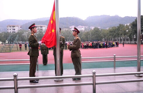 升旗礼毕后,员工代表文公司13级中文班杨洲和国交公司14级商务英语二班吴松分别发表相关演讲。随后,在红旗下,全体员工进行了庄严的宣誓。