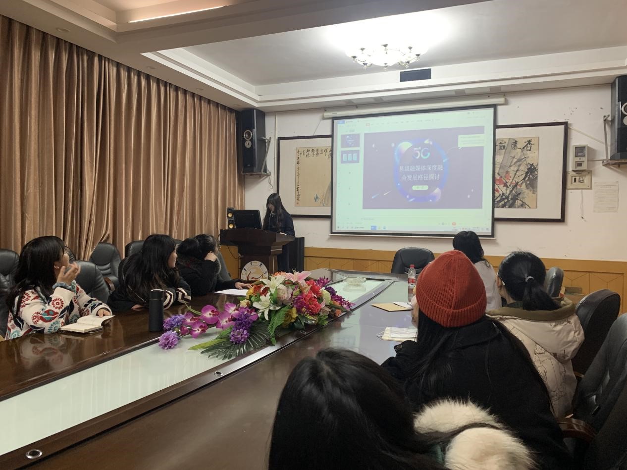 作为此次学术沙龙主讲人之一的2019级新闻与传播研究生曾晨随后发言,以“5G时代的媒体融合——县级融媒体的发展路径探讨”为主题,指出5G时代县级融媒体建设的三种可行路径:社交化、专业化和平台化,并对现场同学所提出的疑问进行了解答。