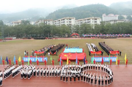 图为 方阵队摆出“吉他”图案(陈慧宁 摄) 此次方阵队由144名新生组成,表演的队形为播放开始键、笑脸、水杯、吉他和运动者,而表演的内容寓意着按下“播放开始键”,用笑容面对生活,胸怀水一般的包容姿态,吉他奏响青春欢乐乐章,活力运动使生活更美好。