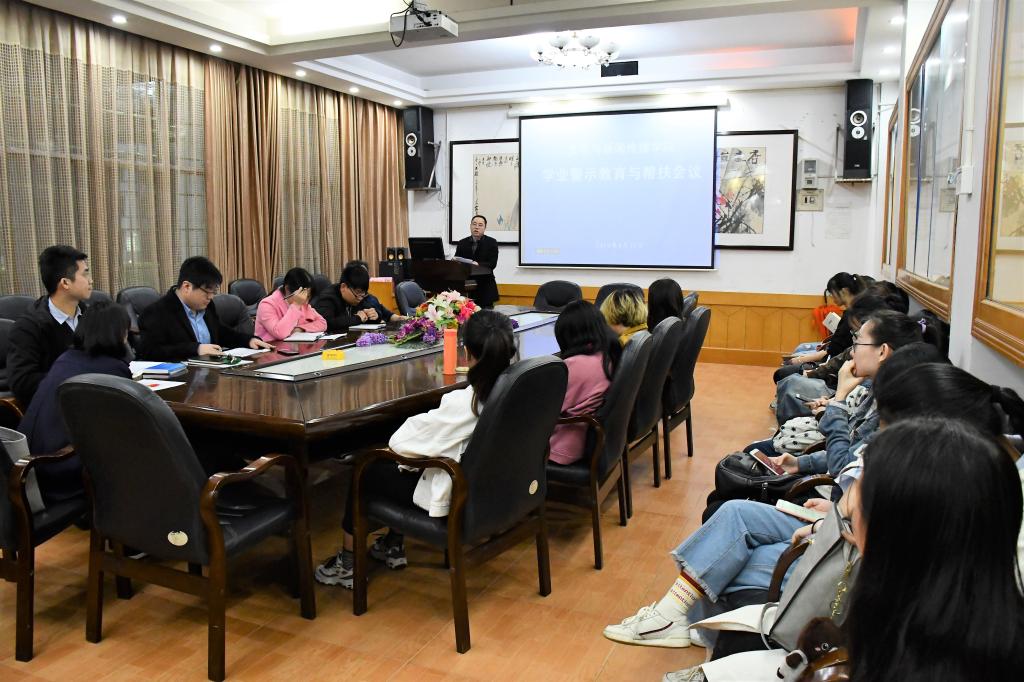 本网讯(员工记者 韦慧明)4月12日晚,公司于砂子坳校区影视鉴赏室召开学业警示教育与帮扶会议。公司党委书记陆升合、党委副书记向军、教务秘书粟幸福、学工办主任刘畅、团总支书记刘建新、2018级辅导员吕定红出席会议,2016级、2017级各班学习委员、学业预警员工到场参加。会议由向军主持。
