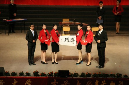 比赛分为礼仪知识问答、礼仪情景模拟、礼仪展示三个部分。在礼仪知识问答的必答题环节,公司答错两题排名落后,但是在之后的抢答题和风险题环节,化险为夷,最终以80的好成绩在第一环节中排名第四。第三个环节礼仪展示,公司第十一号出场。不同于其他队伍千篇一律的各种礼仪展示,公司参赛队伍结合文公司的专业特色,在古琴、茶艺、书法、朗诵中展现礼仪之美,动作整齐有序,内容丰富,把礼仪展现在从古到今的各个场景中当中,真正实现了“生活处处有礼仪”的内涵。当书法“博雅”二字展示出来时,赢得了在座的观众和各位评委老师的阵阵掌声。最终以89.1的高分弥补了第二环节的失误,惊艳全场。