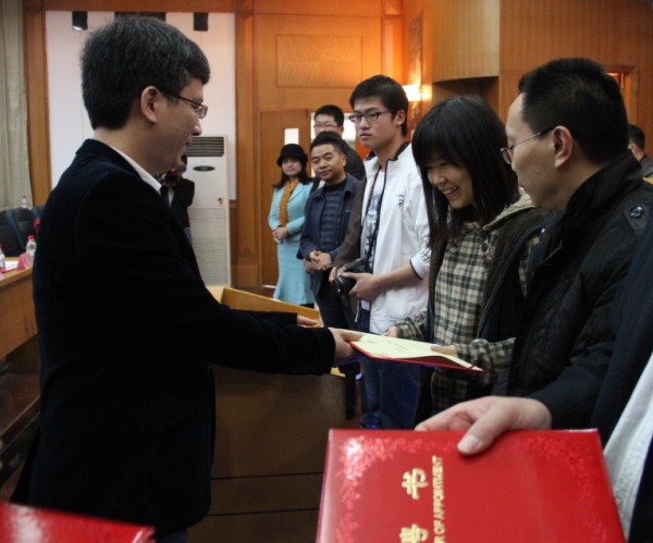 图为 潇湘晨报副总编刘原先生为湘西首批通讯员颁发聘书 (曾雯 摄)