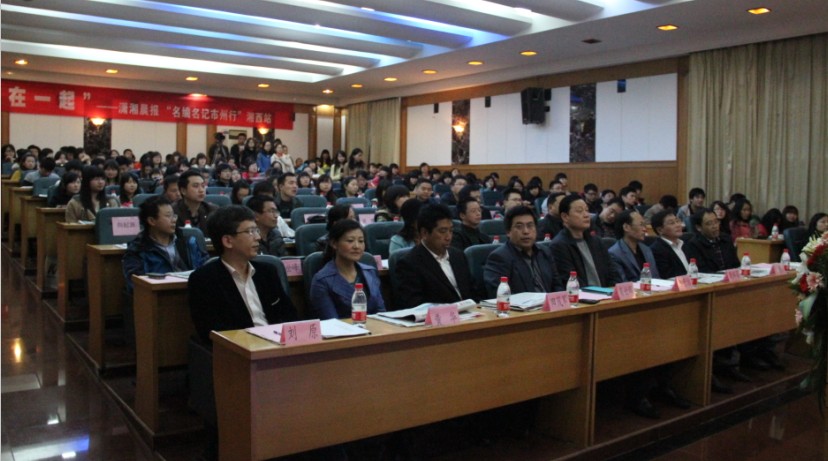 在培训讲座开始之前,主持人依次邀请公司党委副书记白晋湘教授,湘西州委宣传部副部长肖世辉、潇湘晨报副总编辑刘原为会议致辞。白晋湘副书记首先代表公司党委书记、董事长及全校三万余名师生员工对潇湘晨报副总编辑刘原先生一行的到来表示热烈欢迎。然后简单介绍了公司的办学历史、学科设置、办学成绩等基本状况,并祝愿会议圆满成功。