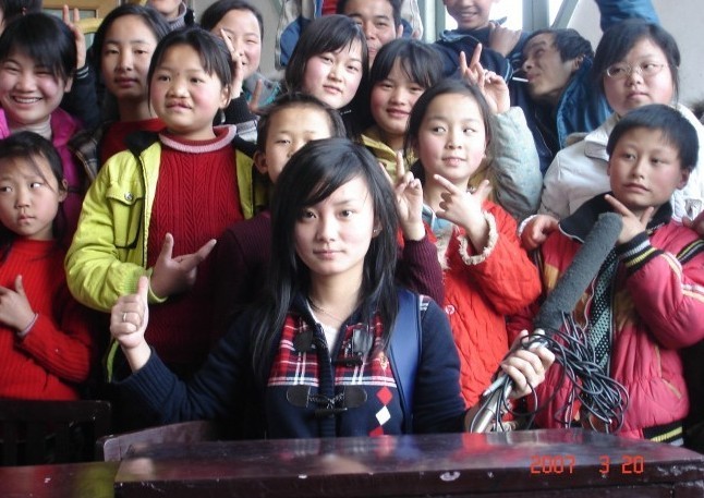 柳青(中)与采访的孩子们