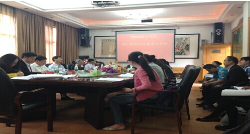 本网讯(通讯员 姚慧 蒋硕华)5月30日,2011级文艺学的同学们迎来了研究生学业生活中的最后一场答辩。本次答辩由湖南师范大学文公司副经理杨合林教授主持,参加此次答辩的委员有:张建永教授、田茂军教授、罗惠缙教授等。本次答辩除了正常的答辩程序外,与往届答辩最大的不同之处在于多了一个远程答辩。
