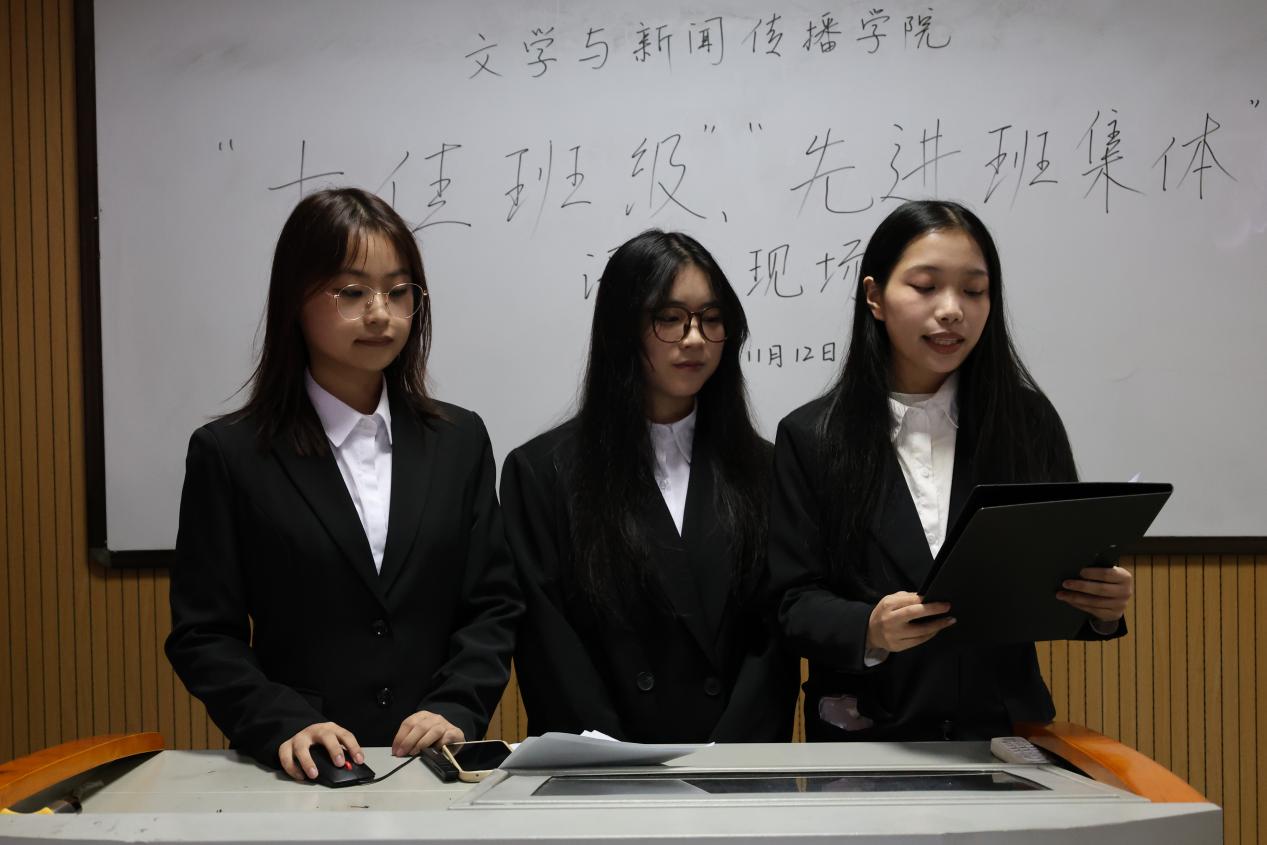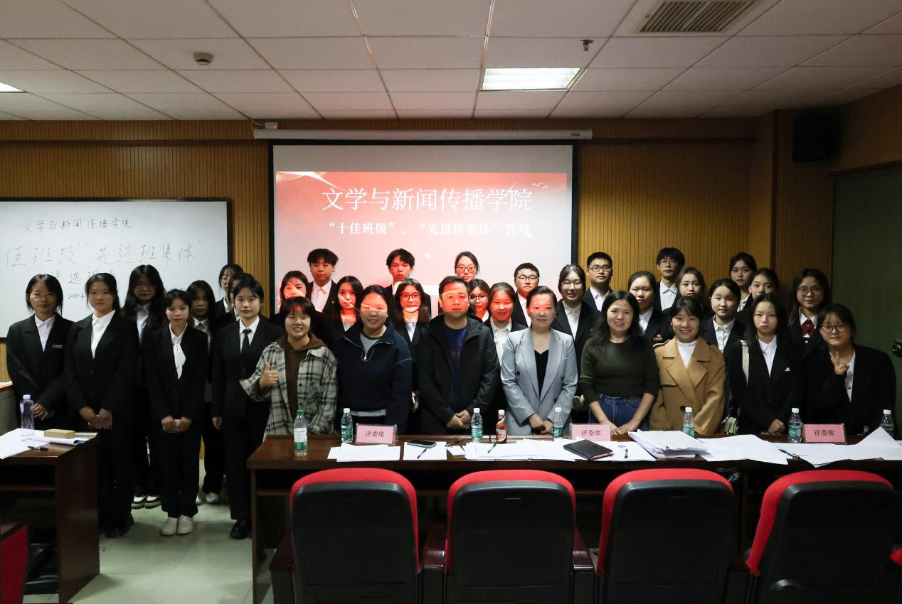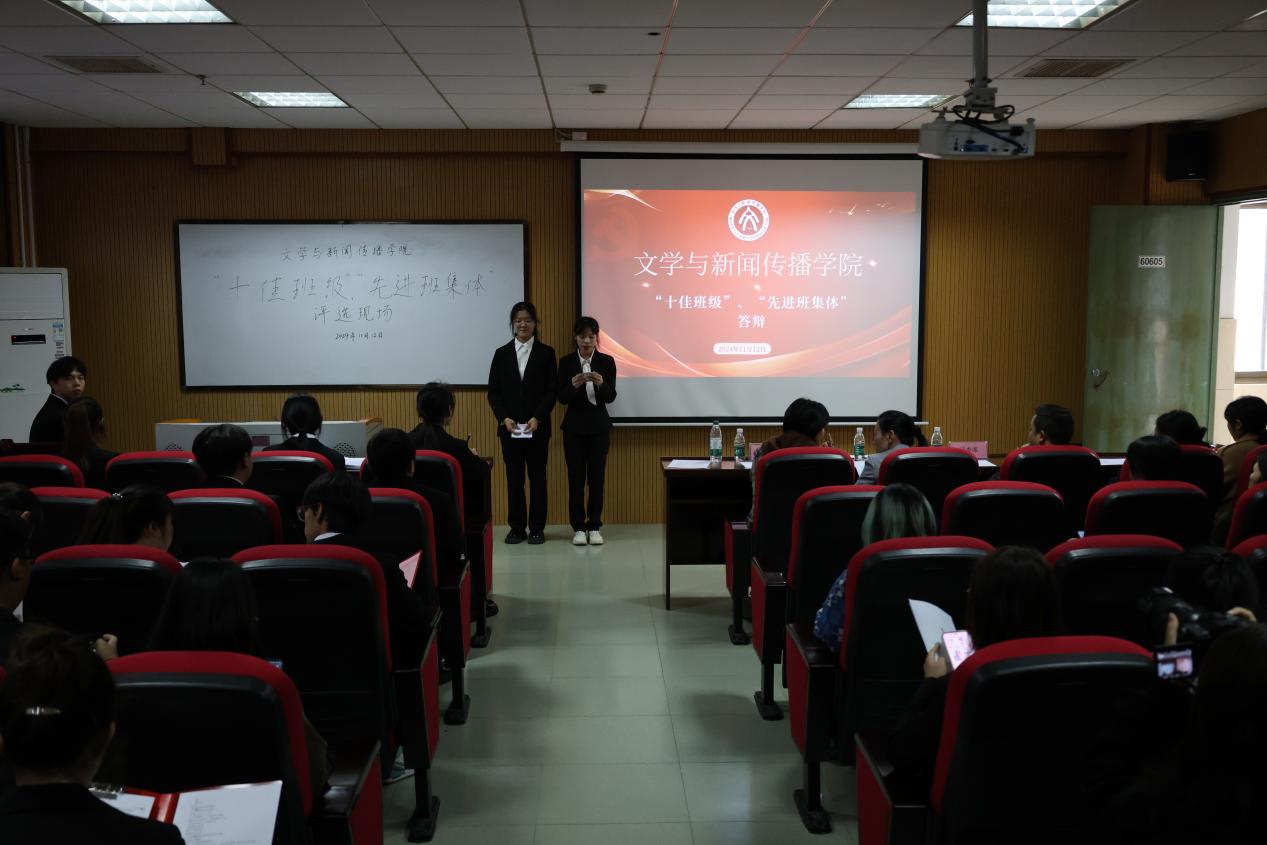 各班班级代表先后上台进行答辩,从班级建设、学风营造、思想教育、实践活动、竞赛获奖、才艺展示等方面展示班级风采。各班级音乐、舞蹈、朗诵、配音、书法等才艺表演充分展示他们的班级活力。经过激烈角逐和认真评审,公司推荐2022级网络与新媒体1班、2022级新闻1班参与校级“十佳班级”评选,推荐2022级汉语言文学(师范)1班、2022级汉语言文学(师范)2班、2022级汉语言文学班、2022级网络与新媒体2班、2023级汉语言文学(师范)3班、2023级新闻1班参加公司“先进班集体”评选。