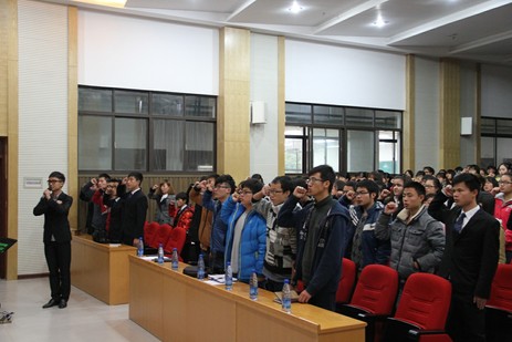“自觉遵守考试纪律,公平参与考试竞争,珍惜名誉,诚信考试,诚实做人,以良好的心态,出色的发挥,考出自己最满意的成绩,绝不辜负老师和家长的信任。我要在考试中培养自己诚信品格,我要在人格答卷上得到满分,我要塑造自己纯净的灵魂,我要为文院创诚信公司、树诚信学风、做诚信学子,书写光辉灿烂篇章。"在杨洲同学的领誓下,13级全体员工庄重立誓。