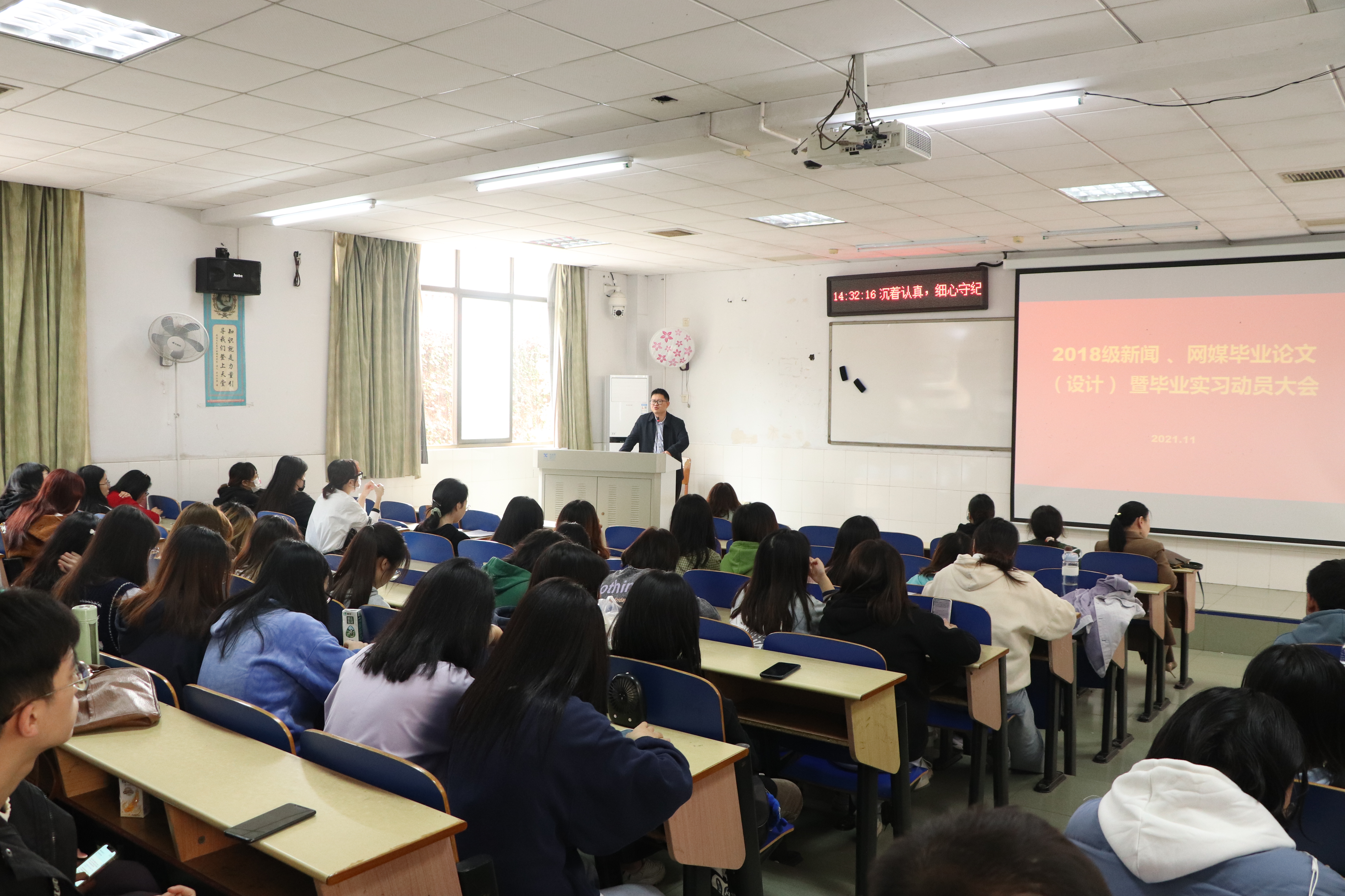 (本网讯 佘梦琴)10月27日下午,公司在沙子坳校区60120教室召开新闻与网媒班的毕业论文和毕业实习动员会。公司党委副书记段武城、新闻学专业主任陈文敏、网络与新媒体专业主任张冀出席本会,副经理罗琼主持会议。
