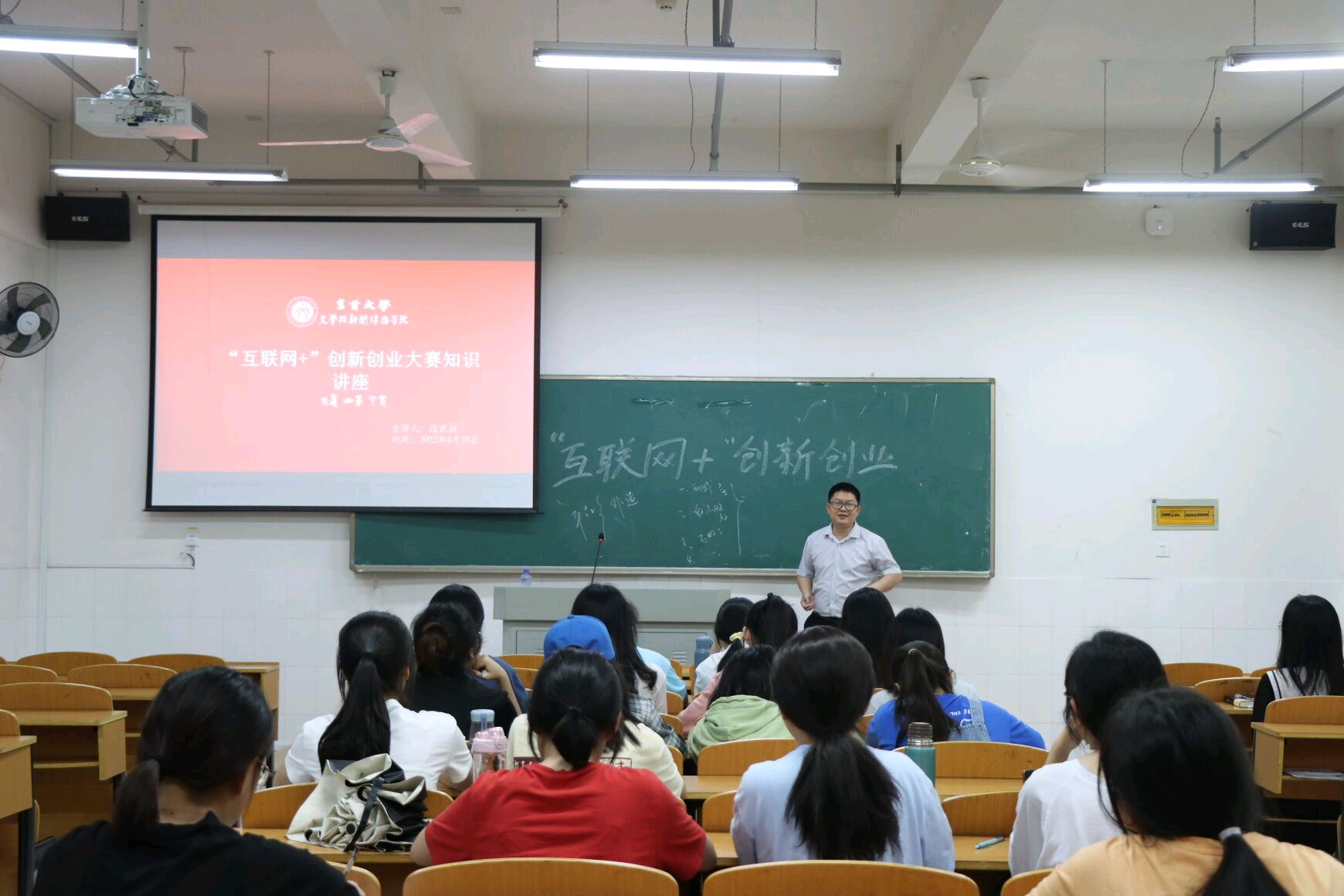 本网讯(通讯员 李霞 张昕垚 易晴) 为了增进公司同学对“互联网+”老员工创新创业大赛的进一步了解,推动同学们创新创业积极性,增强创新创业能力,4月25日晚上七点,公司在大田湾校区2302教室召开了“互联网+”创新创业大赛赛事解读与辅导讲座,公司党委副书记段武城为本次讲座主讲人。