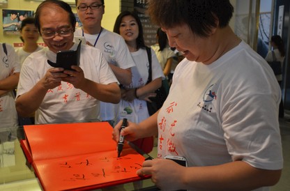 图为 市委常委、宣传部长、副市长龚迎春在留言簿上留言