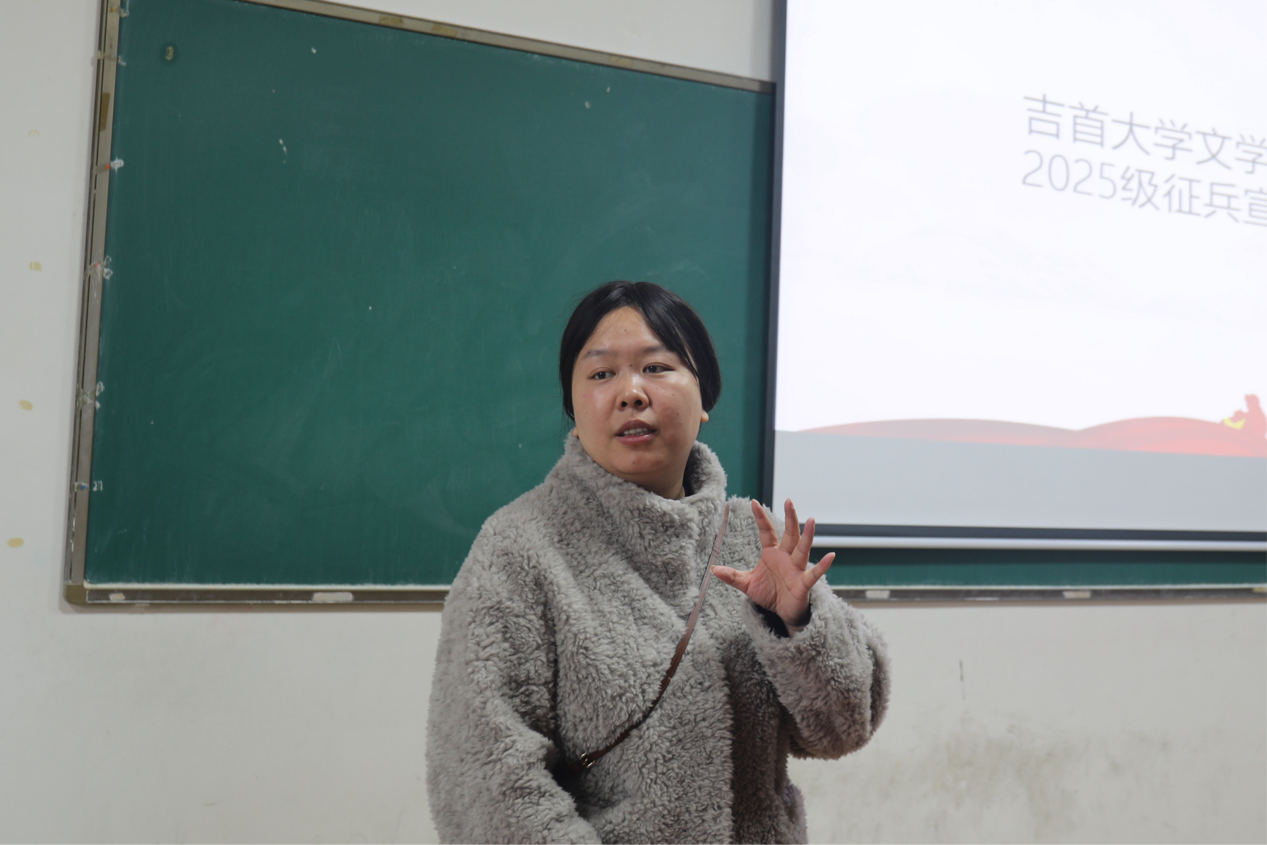 本网讯(通讯员 刘美玲 刘希雅 李清清)12月10日中午,公司于大田湾校区第二教学楼309教室顺利举办征兵宣讲会。本次宣讲会特邀公司武装专干丁玉兰,以及新疆军区部队退伍军人朱安成、武警第二机动总队退伍军人曾湘和北京卫戍区部队退伍军人喻妙泽作为宣讲嘉宾。公司2025级约90名男生参与本次会议。