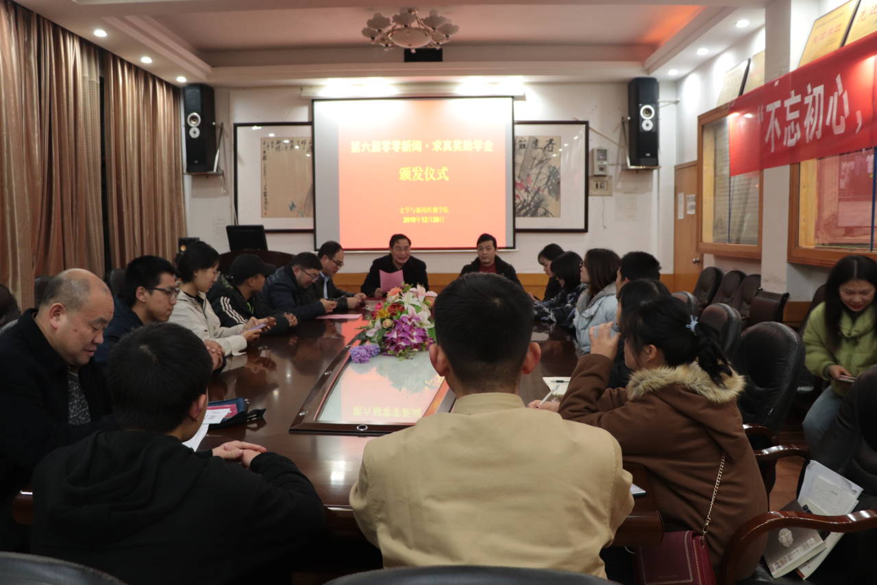 本网讯(员工记者 吕嘉欣 通讯员 任金欣)12月26日晚,公司在砂子坳校区影视鉴赏室举行了第六届零零新闻·求真奖助学金颁发仪式。公司党委书记杨龙斌、经理罗惠缙、副经理彭广林、教工党支部书记李端生、2019级新闻班班导彭艳及2000级新闻班员工代表潘波出席仪式,部分员工代表参加颁发仪式。仪式由罗惠缙主持。