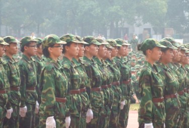 9月21日上午,bv伟德国际在砂子坳校区田径场举行了2013级新生军训队列动作会操比赛。