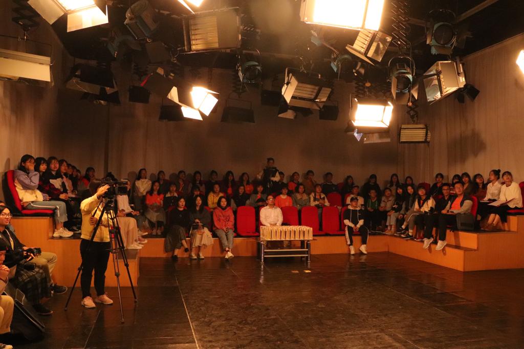 接着,2017、2018、2019级新闻班同学进行了诗文朗诵以及歌曲节目演唱。中间穿插了“习近平新闻重要论述知识”现场抢答赛,同学们积极举手回答,活动现场十分热烈。