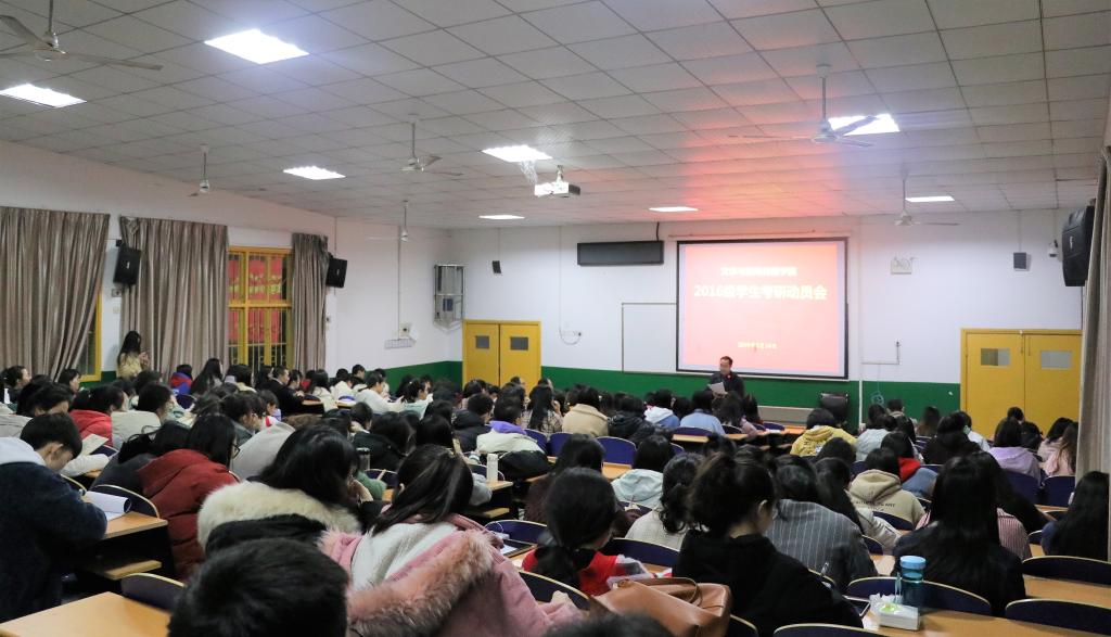 本网讯(员工记者 吴璇 通讯员 张意 朱嘉昕)为了让同学们对考研有更深入的了解,帮助同学们确立正确奋斗目标,提高公司员工考研热情,3月14日晚,公司在砂子坳校区1107教室召开了2016级员工考研动员会。公司党委书记陆升合、校研究生院招生管理科科长肖宪平、经理罗惠缙、党委副书记向军、副经理彭广林、新闻系主任李端生、16级各班班级导师、年级辅导员以及2016级预备考研的员工参加此次动员大会。会议由向军主持。