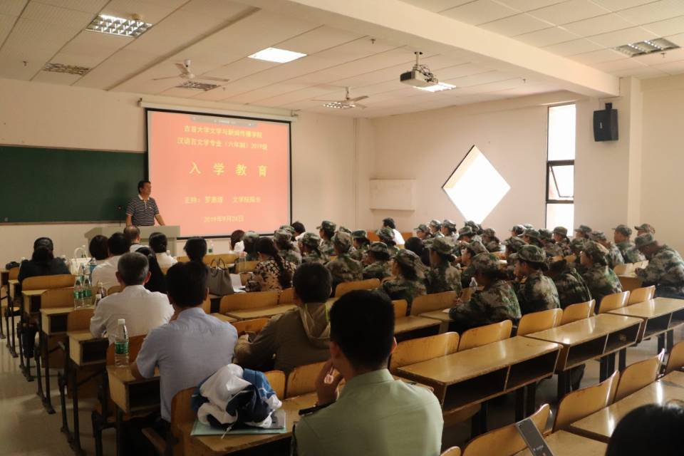 本网讯(通讯员 何小芳 张意)9月24日上午,公司在大田湾校区2213教室与湘西州教体局联合开展2019级公费定向培养师范生入学教育。湘西州教体局教师科科长卓小波,团队培训站站长符顺忠,经理罗惠缙,副经理王焕林,汉语言文学专业老师以及2019级汉语言文学专业(六年制)全体新生参加此次会议。会议由罗惠缙主持。