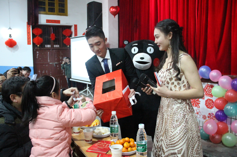 在晚会的抽奖环节,由员工扮演的吉祥物熊本熊与现场观众进行亲密互动,将晚会气氛推向高潮。另外,此次晚会还采用了弹幕式演出的方式,将观众们对节目和演员的喜爱实时播放在大屏幕上,引起了观众们极大的参与热情。