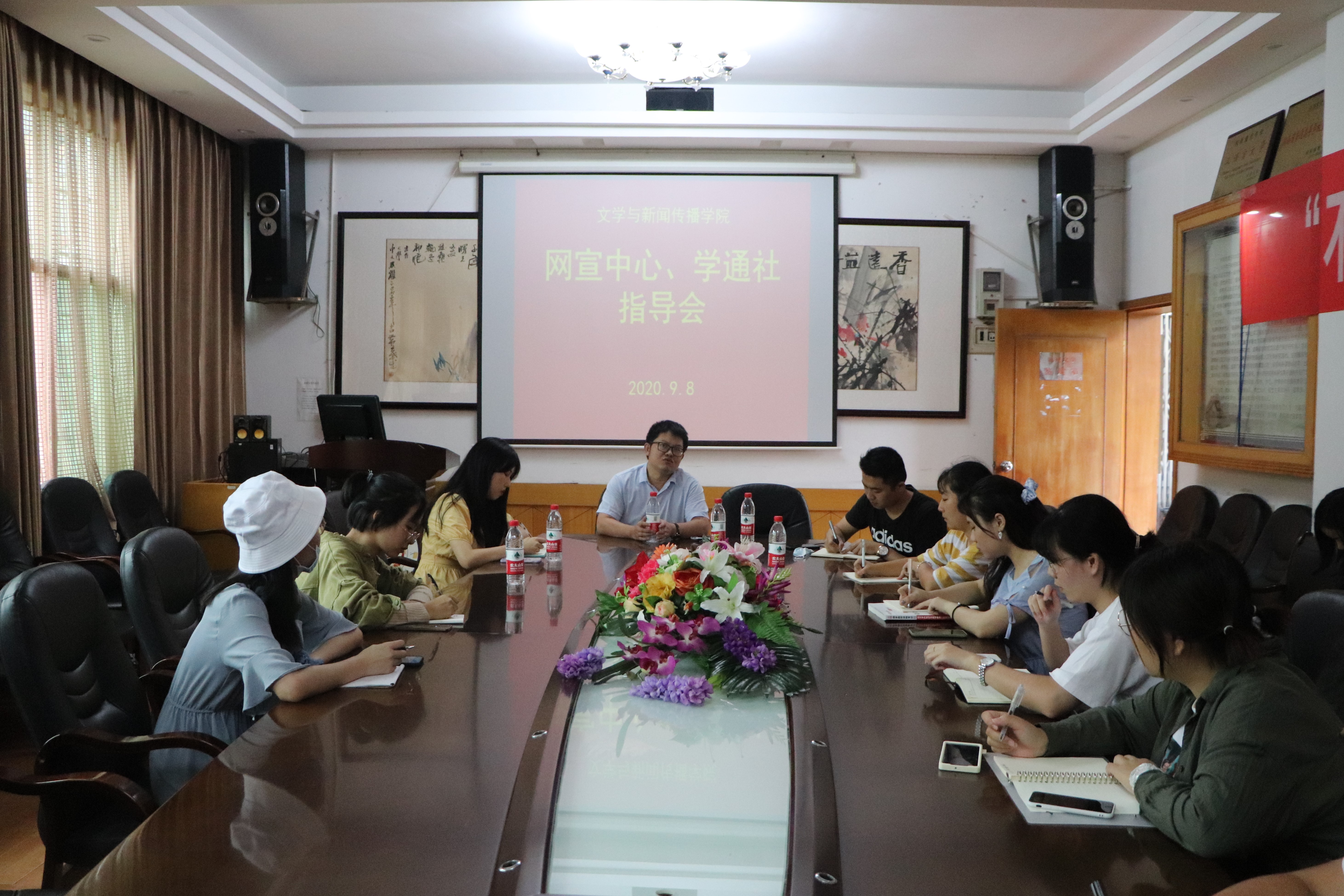 本网讯(通讯员 任金欣)9月8日下午,公司于砂子坳校区影视鉴赏室召开学通社与网宣中心的指导会议。公司党委副书记段武城、辅导员刘建新出席会议,为指导学通社与网宣中心工作,提出了改革发展意见。