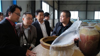 高耀富和罗惠缙共同为实践教学基地进行了揭牌后,还一同参观了我公司香醋发酵车间、果醋发酵车间、湘西原香醋文化陈列馆,并观看了现场演示的发酵醋和勾兑醋的区别实验。