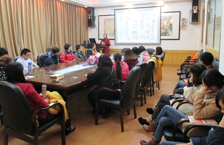 本网讯( 赵燕 ) 27日晚上,在公司砂子坳校区影视鉴赏室,湘西州书法家协会会员,湘西州美术家协会会员,公司2013级在读研究生向玉娥为公司研究生带来了一场主题为“中国书法艺术”的学术讲座。
