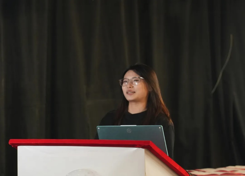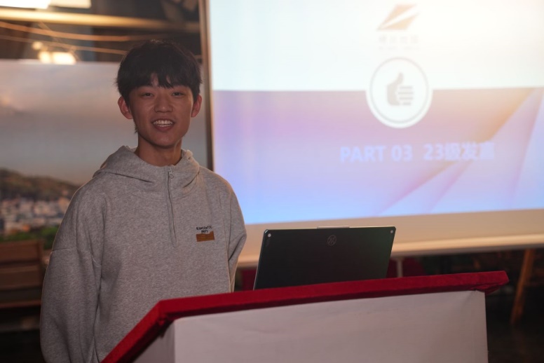 随后,本届副经理罗茜尹和黄雨晴也相继上台发言。罗茜尹提到,在精灵团队中,大家相处融洽,氛围如同家人一般,她鼓励新成员在前进的道路上不要畏惧困难,要勇往直前,并表示学长学姐们将是他们最大的支持。黄雨晴则分享了自己从一名新手成员到站在台上自信发言的成长历程,表达了对老师和同伴们的感激之情,并建议新成员学会欣赏他人的优点。紧接着,新成员们随后纷纷上台进行自我介绍,他们表示非常荣幸能够加入精灵这样一个温馨的大家庭,期待着跟随前辈们认真学习,提升自己的综合素质和技能水平,为精灵团队书写新的篇章。