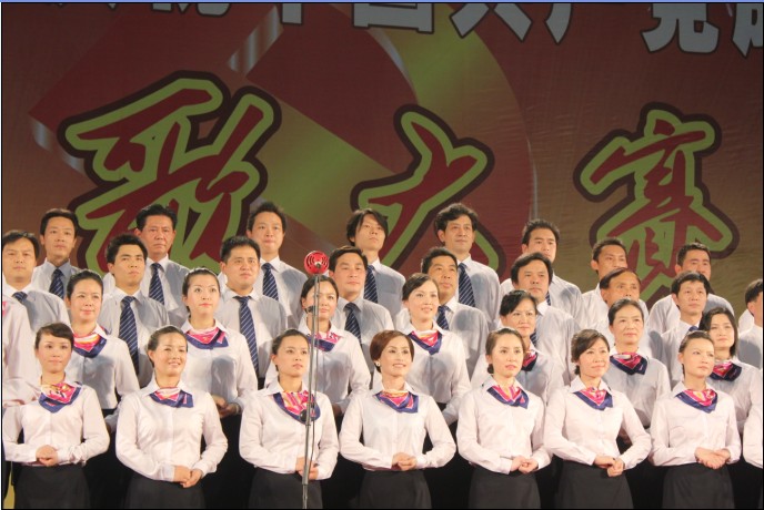图为:公司红歌合唱队比赛风采一