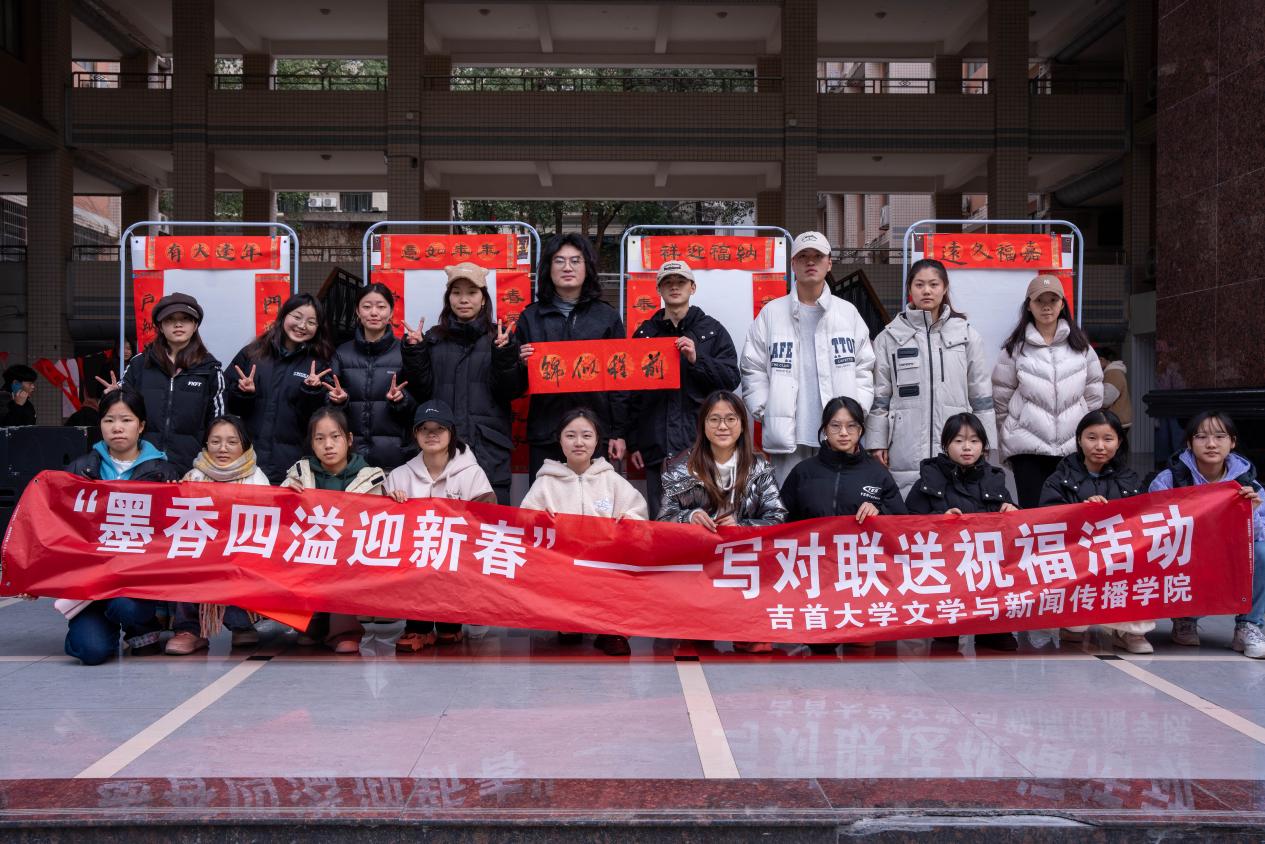 本网讯(通讯员肖哲宇 谭亚迪 龙舟)12月27日中午,bv伟德国际1946第二届“墨香四溢迎新春”写春联送祝福活动在总理楼前坪举行,公司党委书记杨帆、党委副书记彭俊、辅导员、部分专业老师出席本次活动。