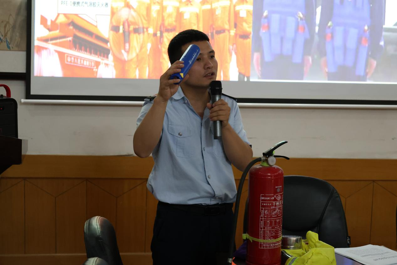 会议伊始,侯自帆通过几场大火灾案例向大家阐释了消防意识的重要性。并针对火灾险情应对措施这一问题,做出了详细讲解与剖析。其中,他从器具构造、使用原理等方面给大家介绍如何正确使用消防器材,并针对油锅造成的起火问题现场演示了灭火毯的用法。会议最后,侯自帆还提醒公司全体教职工在日常生活中要注意防火防电等消防安全问题。
