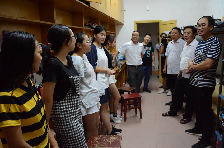 领导老师们离寝后,部分新生表示:“很感谢我们的领导老师来看我们,很感动,在老校区还比较适应。”